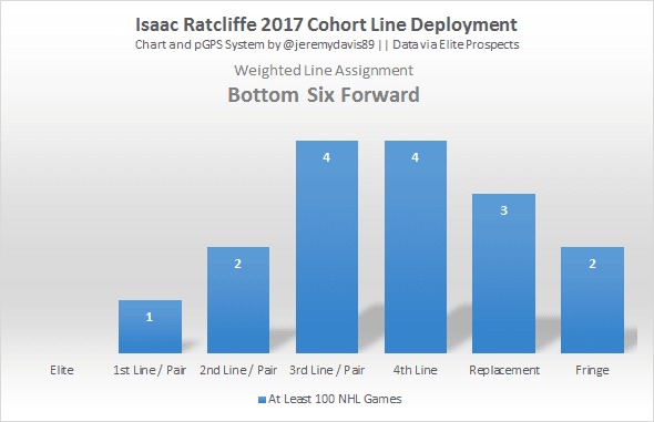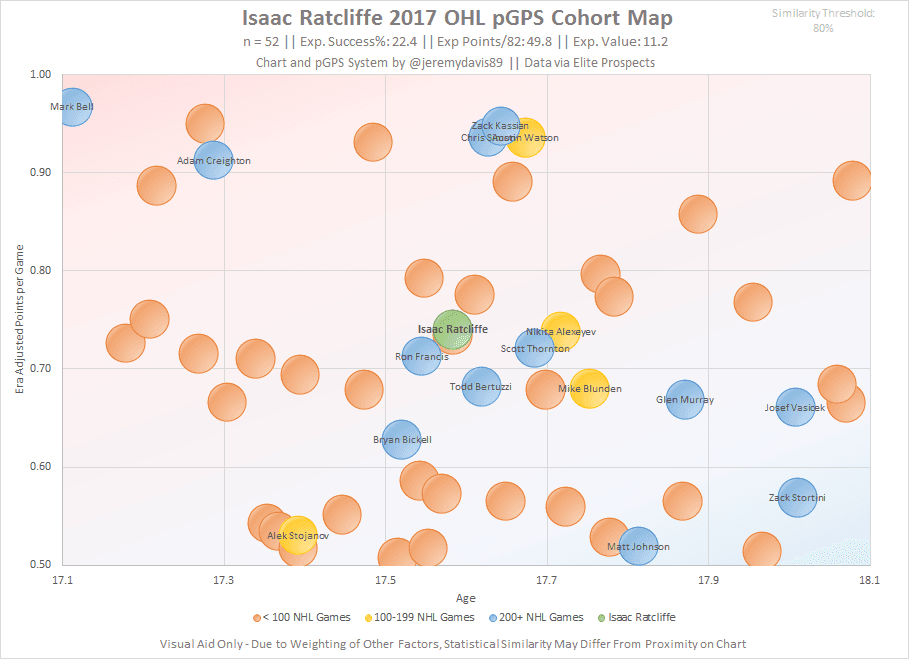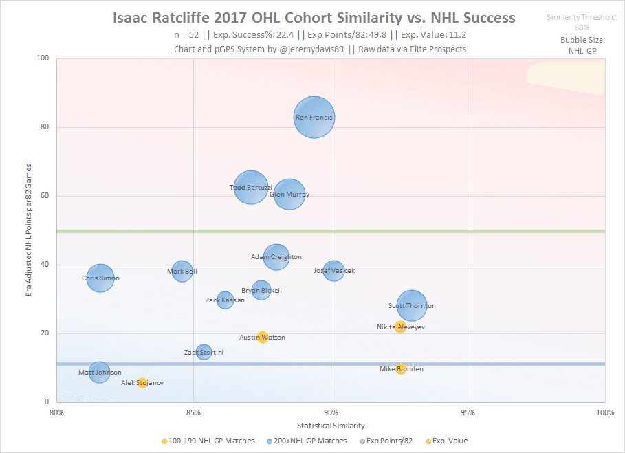 When viewed through the lens of pGPS, Ratcliffe looks like a high-risk, high-reward prospect, with many of his closest statistical matches being role players, and given his expected success percentage of 22.4%, it’s more than likely Ratcliffe doesn’t even amount to that. His matches also include Ron Francis and Todd Bertuzzi, however, so carving out a career as a top-six winger is still in the cards. If Ratcliffe hits his ceiling, he could be the power forward that so many teams covet, but right now he looks like a significant risk, which is why we have him ranked just outside of the first round.