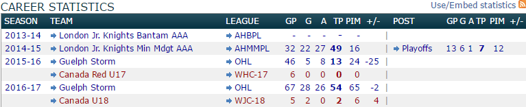 Ratcliffe’s toolkit makes him a tantalizing package, but he didn’t quite put up the numbers you’d hope for from a player with that type of size advantage. That, and game-to-game consistency will be the biggest concerns regarding his play going forward. It should be noted that while Ratcliffe’s numbers would best be described as “good-not-great”, he played on a Guelph Storm team that finished second-to-last in the OHL last season, so his numbers may have been deflated by playing with a lower quality of teammates than many of his peers.