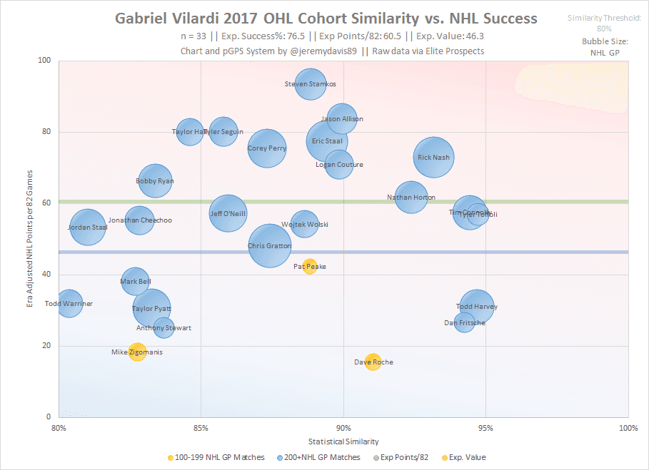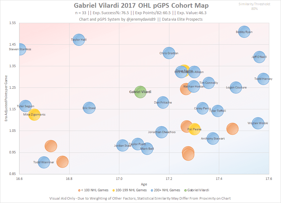 While there are no public forms of shot metrics for junior hockey, the positive effect that Vilardi has on his teammates has been revealed by Vilardi’s head coach in Windsor, Rocky Thompson. “The enhanced stats tell us [Vilardi] is the engine on this team because whoever plays with him, their Corsi numbers go straight up and are increased,” Thompson said. “Without him, they drop significantly. We’ve had a ton of injuries this year so it’s been a revolving door with our lines but the one common theme has been Vilardi’s ability to make the players with him even better.”