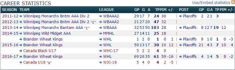 - Draft Year Team: Brandon Wheat Kings (WHL)
