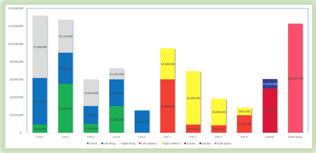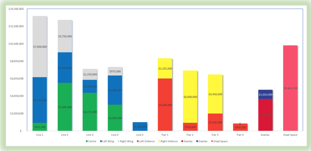 This lineup includes $9,816,539 in dead salary cap space due to burying contracts, buyouts, and unfair payback penalties. There is also the potential that any performance bonuses earned by Pettesson or Hughes will also carry over into 2020-21 if no further cap space is opened up.