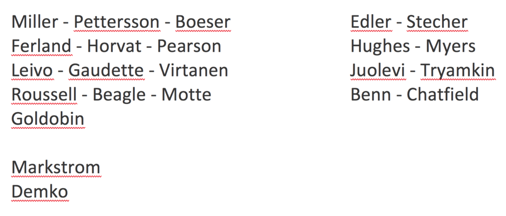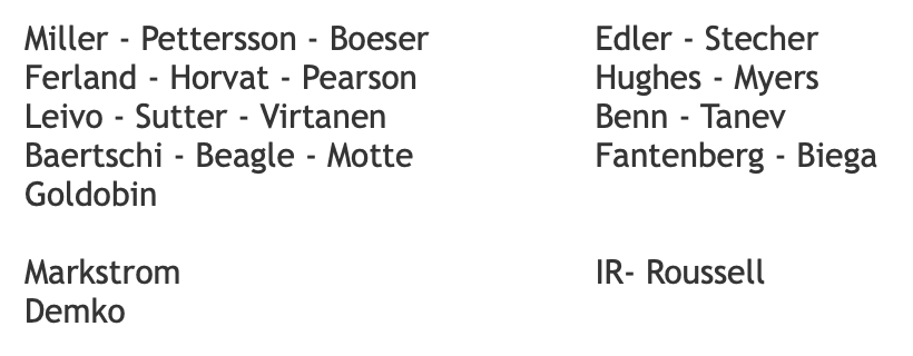 Tanner Pearson leaves in free agency, replaced by Kole Lind and Nils Höglander takes Baertschi’s spot. Leivo gets taken in the expansion draft by Seattle and is replaced by Vasily Podkolzin.