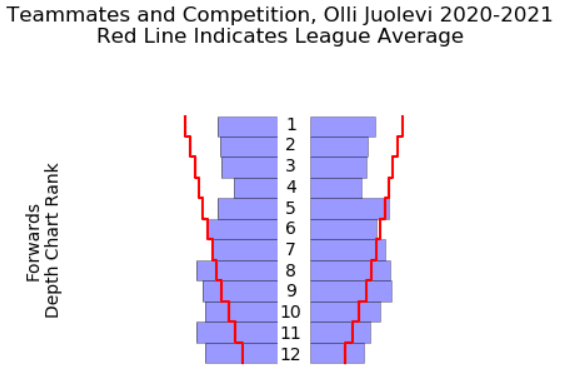 Juolevi was used in very sheltered minutes last season while primarily playing against bottom-six competition while also being saddled with the Canucks’ bottom-six forwards for most of his ice time.
