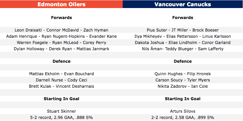 Edmonton had a 28-9-4 record in Rogers Place this season, showing their ability to build off the home crowd. This should be troublesome for Vancouver, as they put their 3-0 road playoff record to the test tonight.