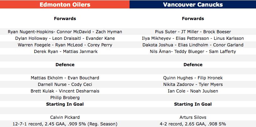 One of the biggest strengths of this Canucks’ success this post-season is their ability to play all three defensive pairings, have kept them all fresh, but that’s not a luxury I’d imagine Vancouver will have tonight. The projected third-pairing of Ian Cole and Noah Juulsen could cause problems for them, especially if they’re matched up against McDavid or Draisaitl’s lines. Watching this series, Canucks fans have seen the struggles Cole has had.