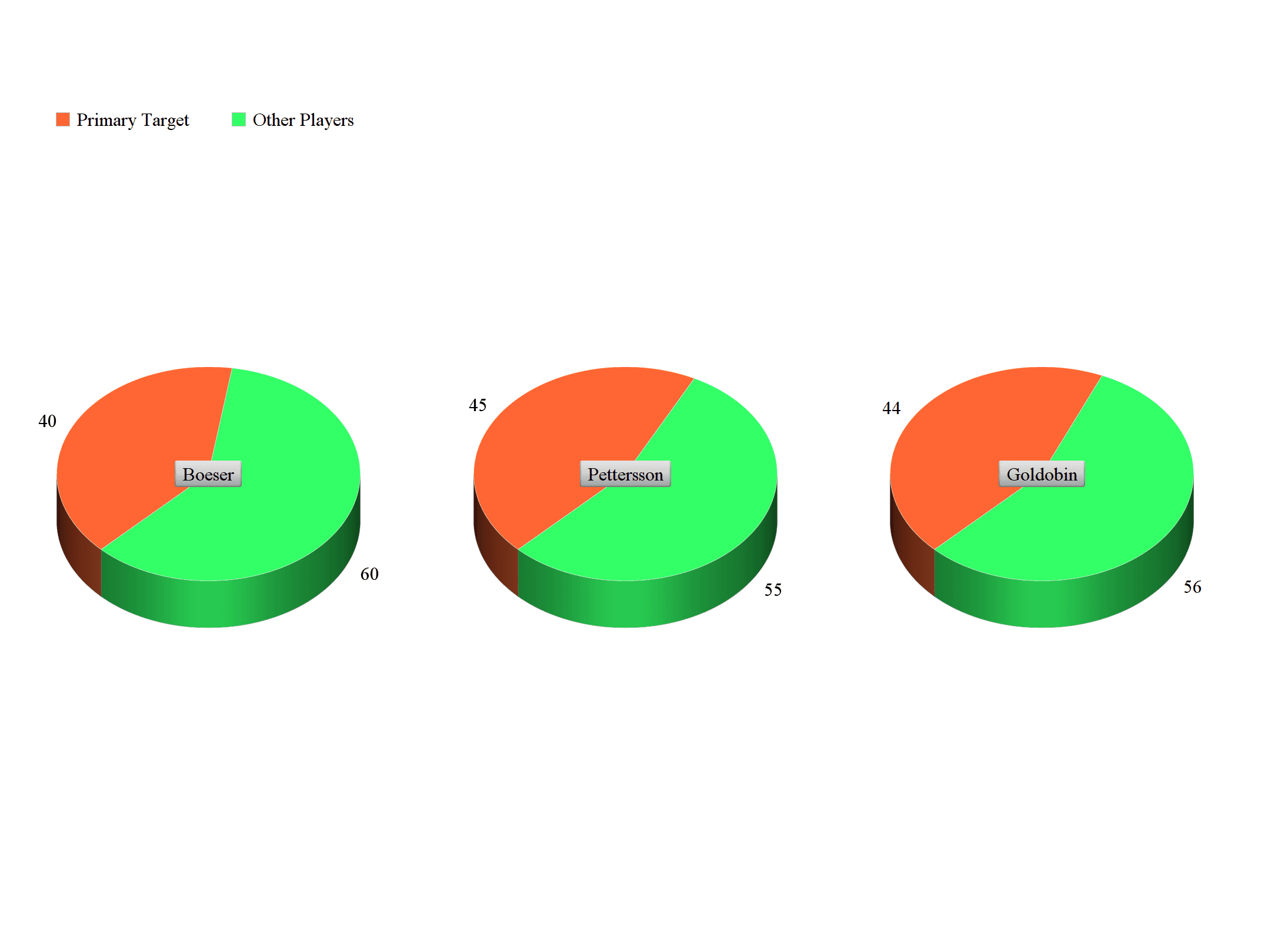 But this narrative is not sustained by facts (except for the otherworld deity part, which is incontrovertible). The below graph shows the percentage of assists each of Goldobin, Pettersson, and Boeser get from setting up their favourite target for a goal.