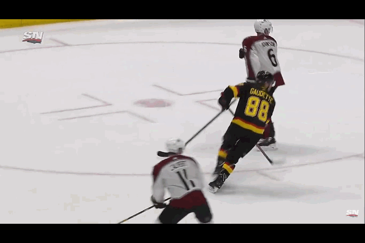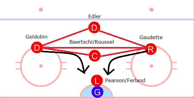Here’s an example of Goldobin and Pettersson working together with Pettersson as the playmaker.