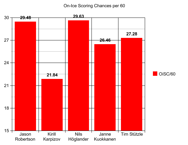 Höglander stacks up well compared to the rest of the rookie crop when it comes to scoring chances. When he is on the ice, he creates more scoring chances than all of the top-scoring rookies in the league with 29.63 per 60 minutes.