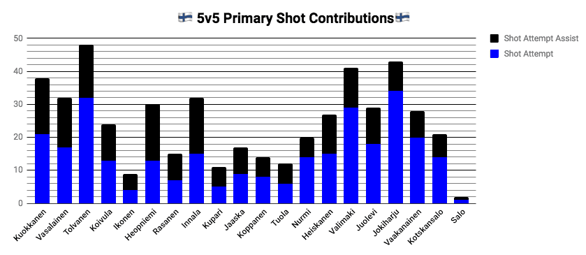 Here’s another chart providing evidence that being involved offensively at even strength is nothing new to Juolevi, who finished the 2017-18 WJC with four points in five games.