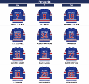 The Americans appear to be fully healthy and ready for their shot at Olympic gold. Tage Thompson, who left Friday’s semi-final, participated in a team practice on Saturday and looks to be good to go on Sunday.