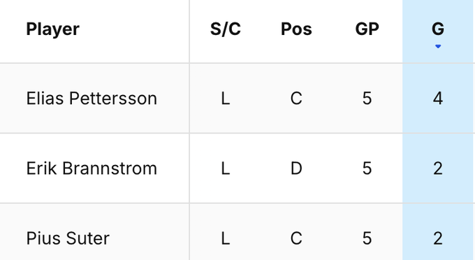 While the market loses its mind about the many defensive deficiencies on this year’s club, those problems in their end have overshadowed the club’s significant struggle to generate offence since Boeser left the line-up. Teams can overcome a handful of players hitting a rut at the same time, but it’s hard when almost all of the players expected to score wind up going missing in action at the same time. Somebody needs to step up to fill the offensive gap left by Boeser’s absence. A resurgent Elias Pettersson can’t do it alone.