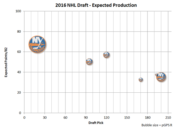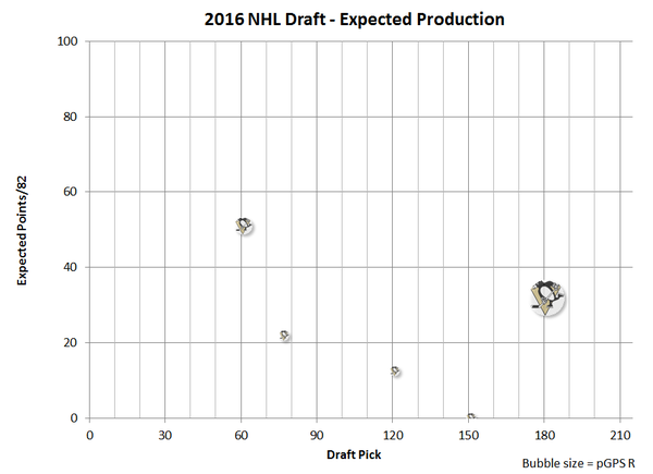 - Selections – Number of draft selections, not including goalies. Goalies are not part of the pGPS model and thus are roundly ignored through this whole process.
