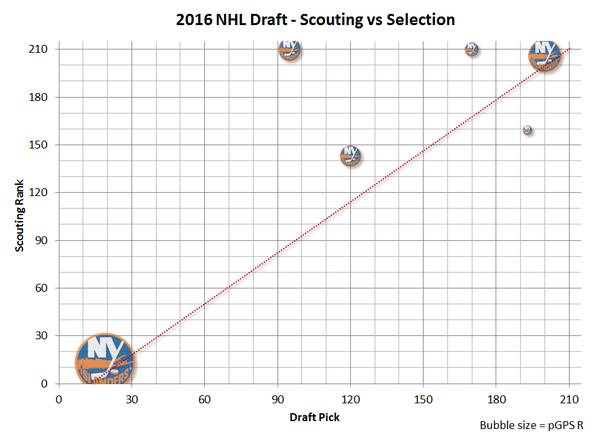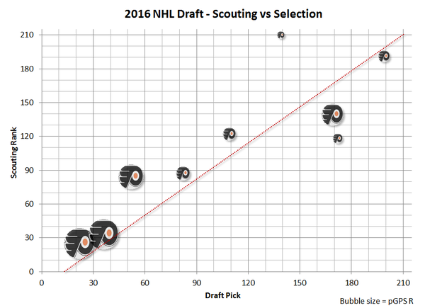 The pGPS opinion is pretty much in line with the scouting opinion here. Value gained on Gettinger (141) and Ronning (201), value lost on Reunanen (98) and Fontaine (171). Ronning is seen as the best value pick relative to where he was taken.