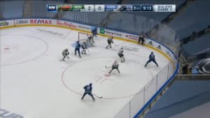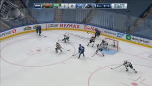 Vancouver’s top line is kept to the outside, unable to attack the middle and is ultimately forced out of the zone without a quality scoring chance.