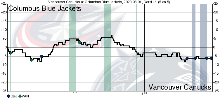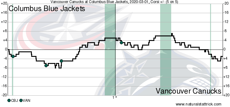 The Canucks struck early in the period but the Blue Jackets definitely didn’t back down. They ended up getting plenty of shots on net as they outshot the Canucks 15-9 at five-on-five and 16-14 at all strengths.