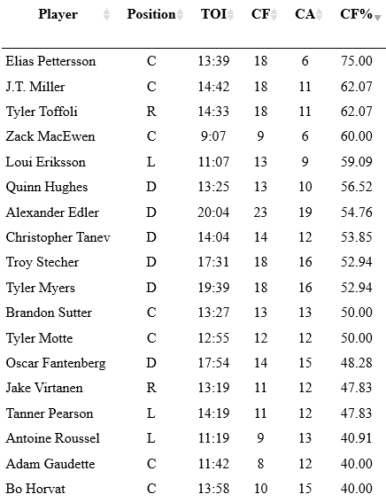 JT Miller and Elias Pettersson were good in the first 40 minutes of this game. They each had three points in this game but the way this game finished, there should be no top performers.