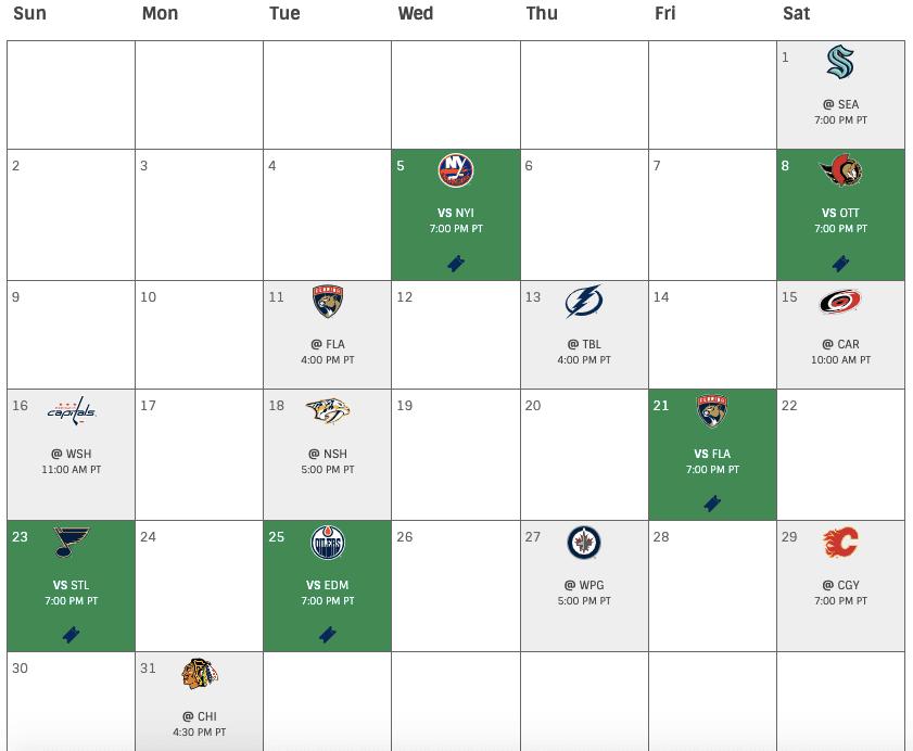 Two games against the Florida Panthers, games against the Carolina Hurricanes, Tampa Bay Lightning, along with Pacific Division matchups against the Calgary Flames and Edmonton Oilers that will be of the utmost importance, highlight the month.