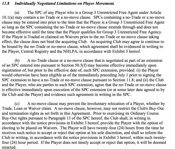 This means that a no trade clause or no movement clause cannot be applied to Horvat’s contract until 2021-22.