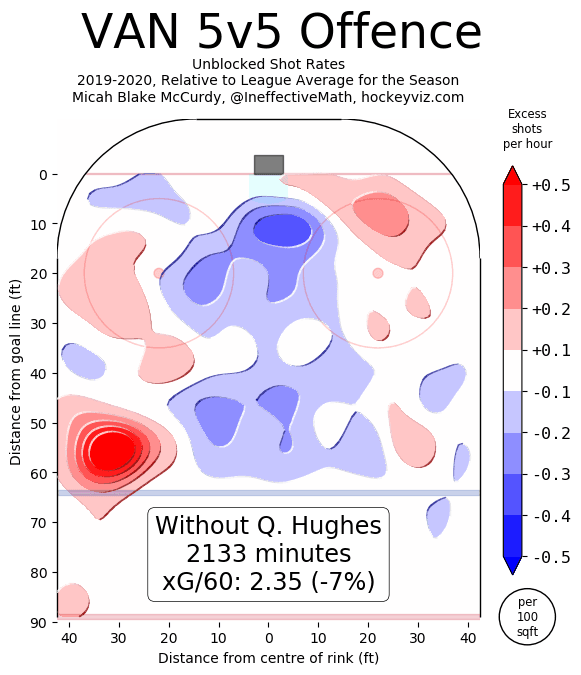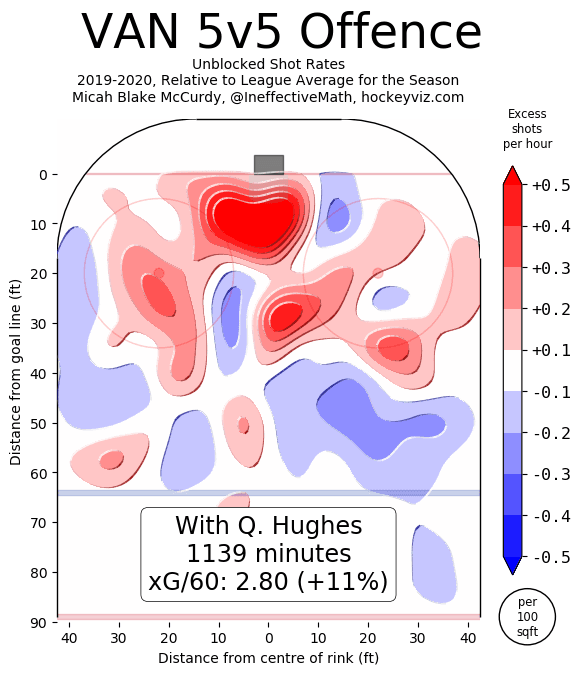 We know Hughes is an offensive juggernaut who makes challenging plays look effortless and can get out of trouble with a quick turn. He creates more chances for the offence than any other defenceman on the Canucks.