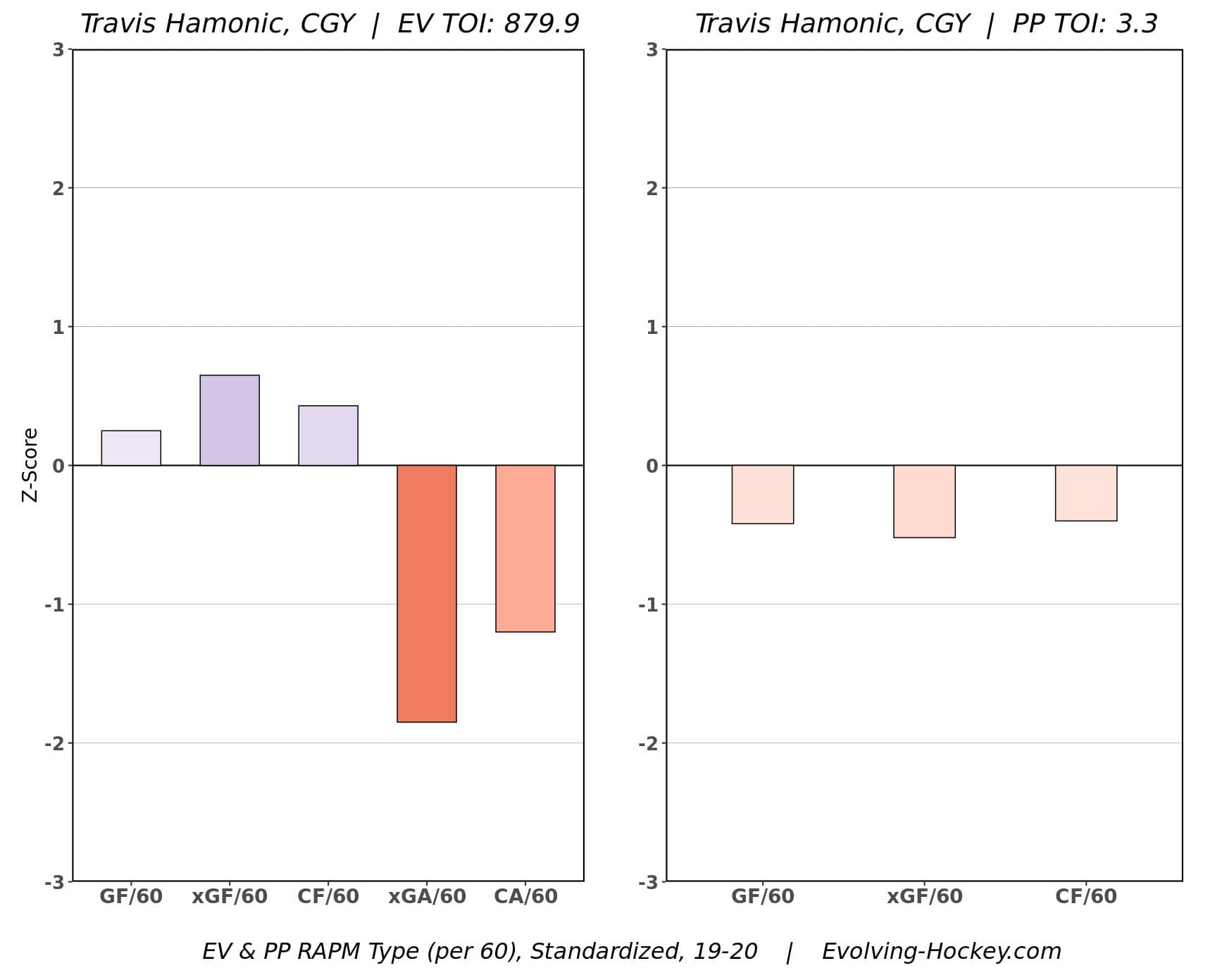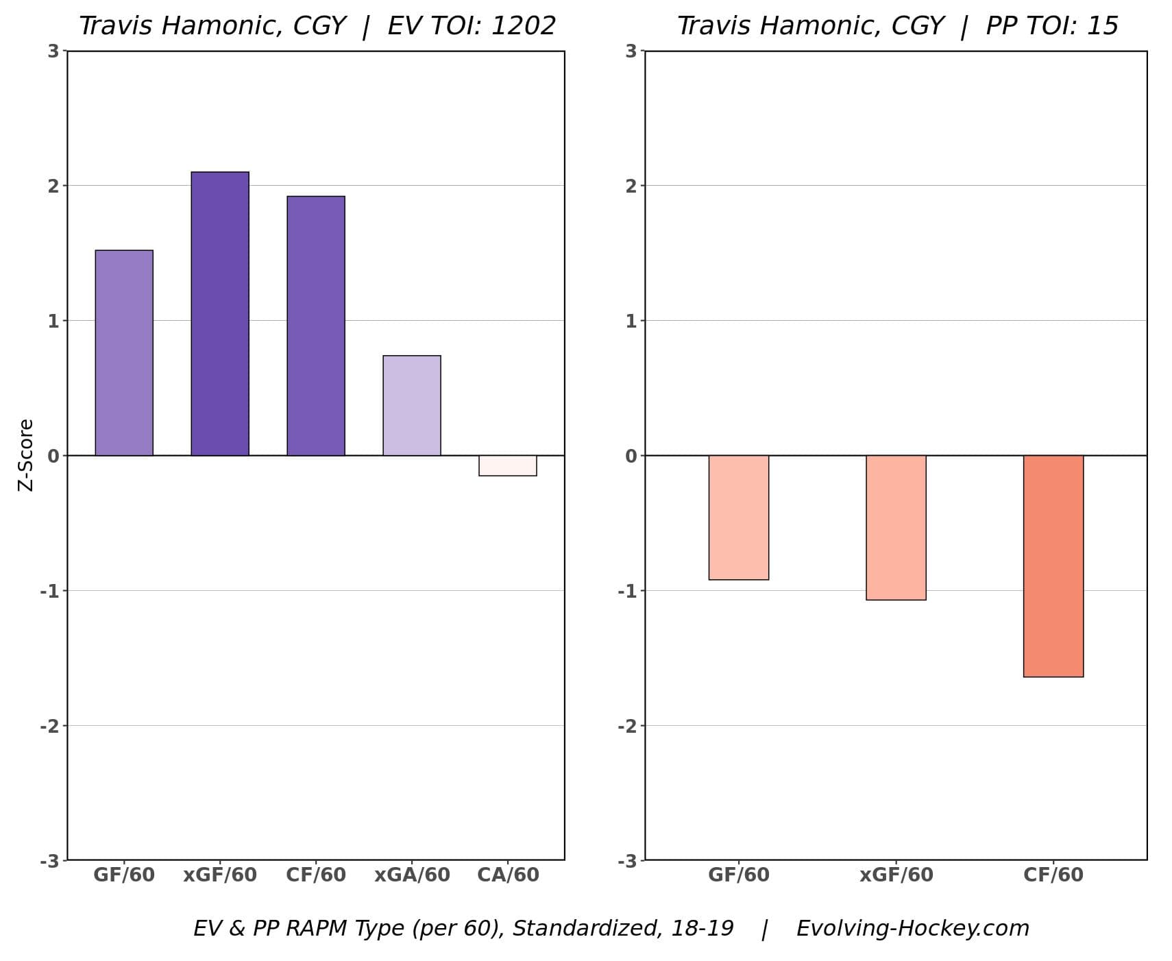 The potential of a rebound season: Hamonic’s past season with the Flames wasn’t much to write home about as he had his struggles defensively and didn’t really balance it out with his offensive impact: