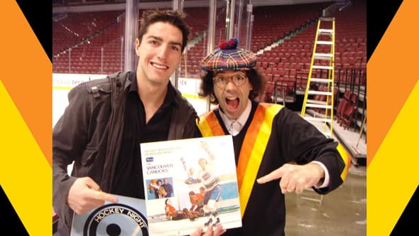 Nardwuar: I guess it’s probably going to be the same one that everybody says: Burrows scoring in game 7 against Chicago. Partly, it’s my favorite moment of the Canucks because the picture of it actually includes my buddy Fred from Mint records, because he’s there in the crowd cheering. And Mint records has released a whole bunch of Evaporators records (my band the Evaporators) and also a bunch of Nardwuar DVD’s and they’re releasing an upcoming Evaporators record – so it’s just amazing. Canucks score, they win, what an amazing moment and there’s my buddy Fred! It’s hard to see him, he’s way in there, but yes, he’s there! And he’s a long-time Canucks fan, so it’s kind of cool to see a long-time Canuck fan finally get some kind of like acknowledgement, even if it’s just a little photograph and they’re barely in it.