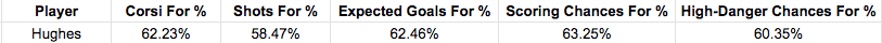 But it’s not all about offence; Hughes had the defensive analytics to back it up.