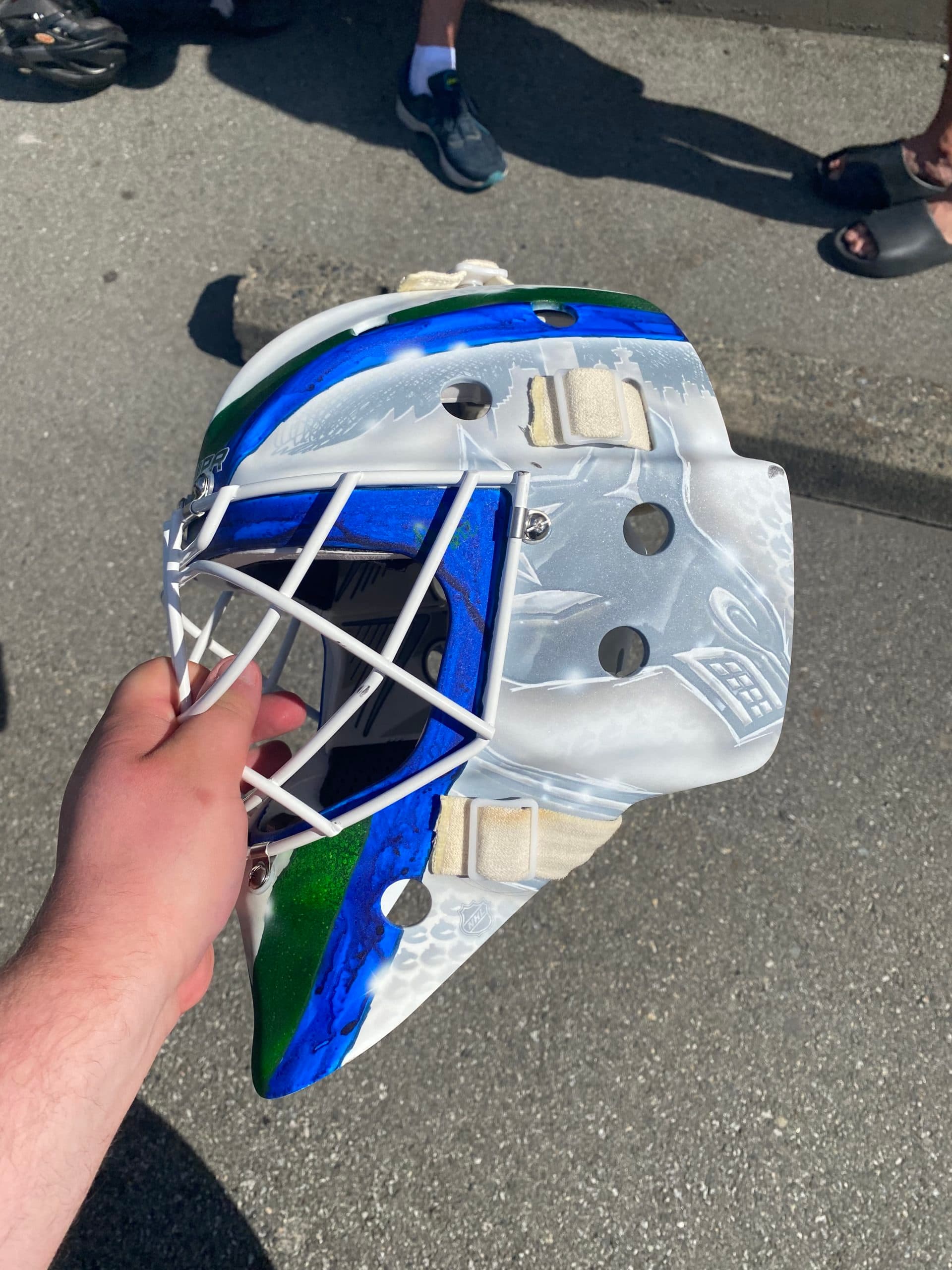 Scenes from a Canucks skate: Tucker Poolman back on the ice, Spencer Martin’s new mask, and preparing for Young Stars
