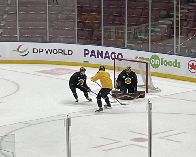 Thatcher Demko putting in a shift at practice. Going though all the moves and motions of a guy close to his #Canucks season debut