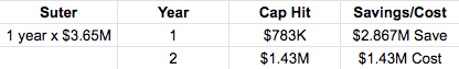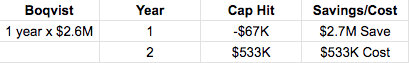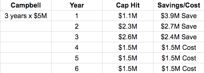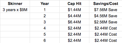 This is the only circumstance in which we see a player under 26 get bought out. This means that the Blue Jackets are only on the hook for a third of his remaining contract, and they actually save $67K towards their salary cap next season.