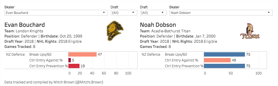 Without the puck, expect Bouchard to improve his coverage and gap in the own zone as he learns to become more proactive with his feet. Neither area looks to be a strength for Bouchard moving forward, but I certainly expect him to show better in both those regards than he did in junior.