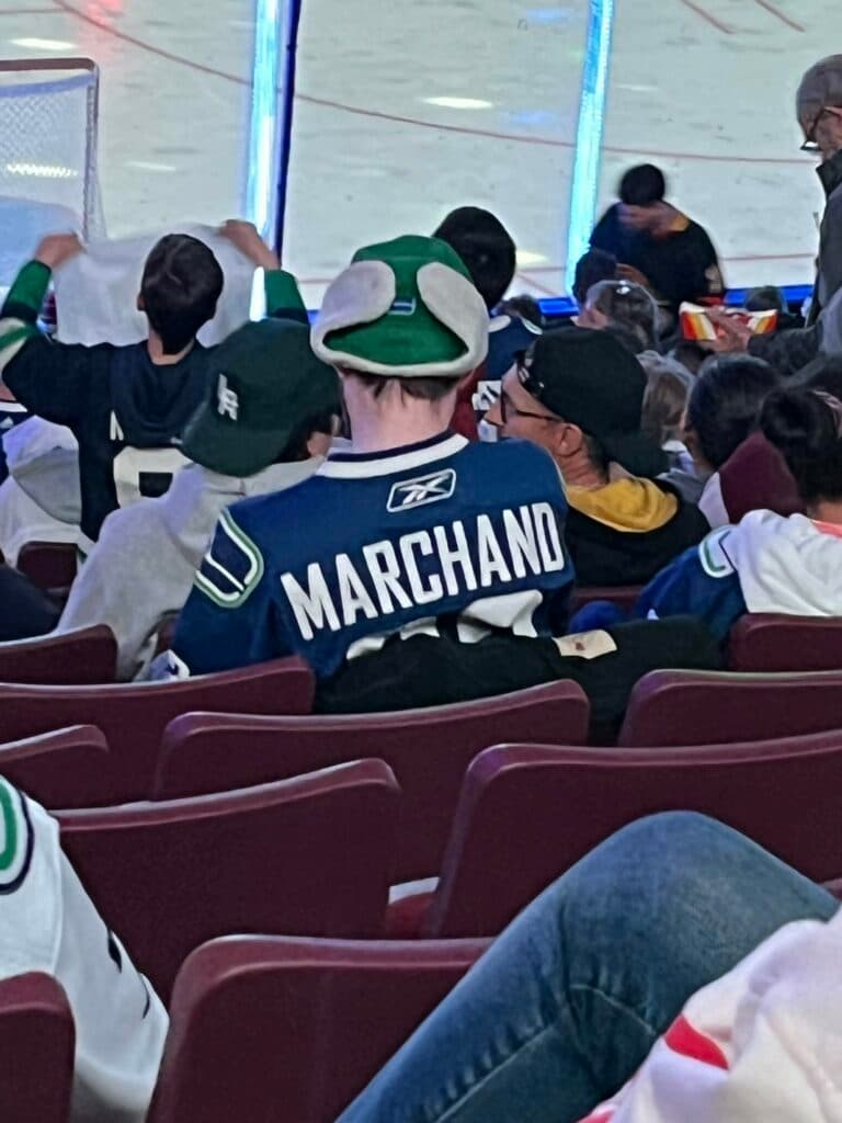 That is incredible. The only thing I need now is someone wearing a #27 Todd Bertuzzi jersey to sit beside him.