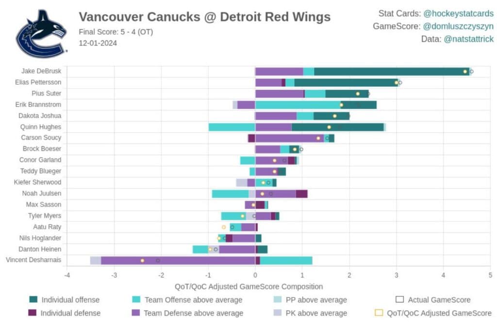 All of which seems pretty good for a team missing JT Miller, Filip Hronek and Thatcher Demko. Feels like that’s pretty ok?