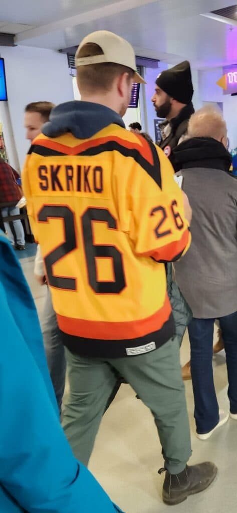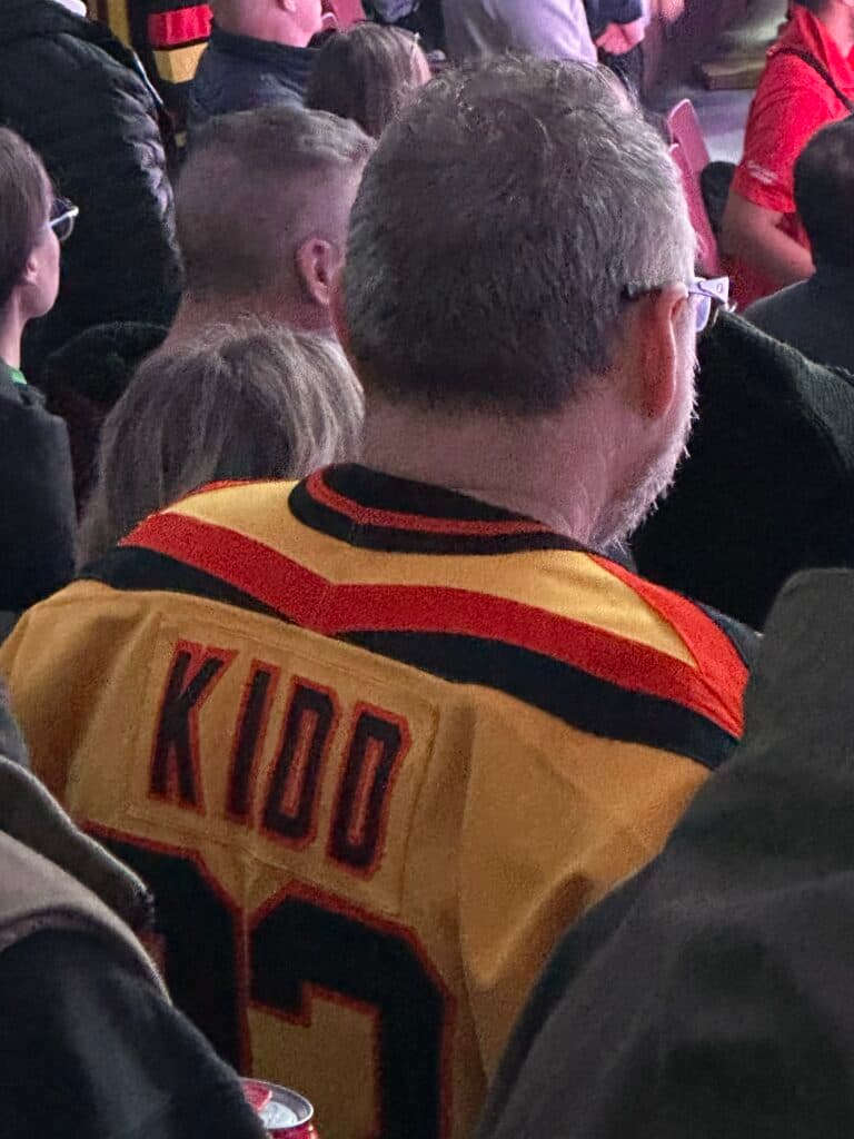 This right here is a jersey from Ian Kidd’s one year in Vancouver in 1988, the year he had to wear number 32 on the night because Kevin Guy had his number 2.