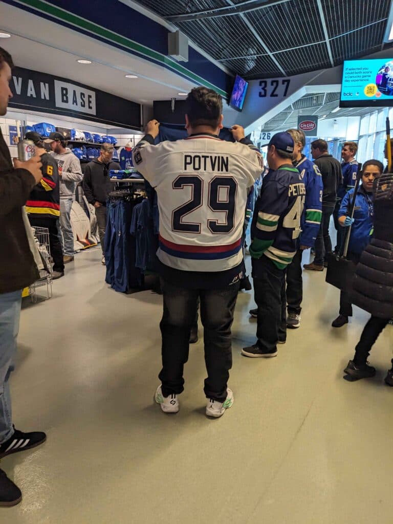 Former Stanchies writer Trent spotted this bad boy today, and I’m happy Felix Potvin Canucks jerseys still exist out there.