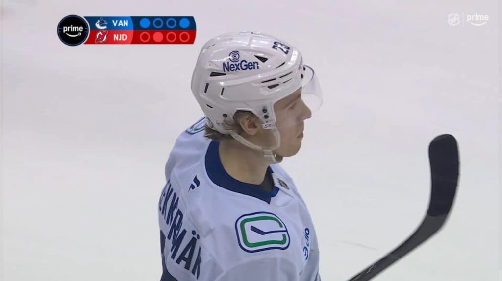 Again, New Jersey knows what Quinn Hughes is going to do; they are just powerless to stop it. At best, they run a QB spy and track him as he races around the ice while the rest of the team sets up man-on-man coverage to take out the other Canucks from doing anything with the puck should Quinn get it to them.