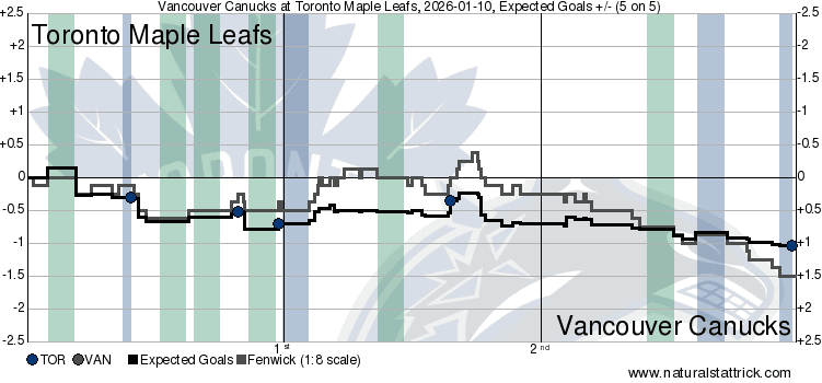 The game flow chart is misleading. Both the expected goals and Corsi favoured the Canucks not because they were better, but because they simply had relatively more of the puck. In the first, the Canucks had four power plays. Not scoring on them aside, usually when a team is on the man-advantage, they can generate some momentum and carry that forth going on into the return to 5v5. Instead, it seemed that the Canucks simply let the Leafs do whatever they wanted, and it resulted in Toronto capitalizing thrice in that opening frame. The rest of the way, Vancouver simply didn’t have anything in the tank to make this an interesting contest.