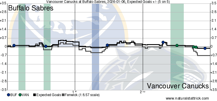 The final overall numbers saw a heavy advantage for the Canucks, but that was buoyed by special teams that got plenty of chances but didn’t have a lot of finish. Unfortunately, there was a path to victory here, but combined with the fact that they couldn’t make Buffalo pay on the man-advantage, and the lack of needle-moving at 5v5, you end up with a game like this one. At least it was fun towards the end, but the Canucks need help and some serious game-breaking talent.