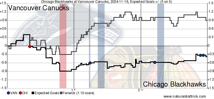 It wasn’t a dream first period for the Canucks. Getting caved 0.64-1.47 xGF isn’t great, especially against the likes of Chicago. In the opening frame alone, Vancouver gave up 5 high-danger chances while only getting 4 high-danger chances of their own. Luckily, they managed to figure it out by the time the second period rolled around, the team controlling a 72.97 CF% and 58.93 xGF% share. It was enough for the Canucks to even up the game then find their go-ahead tally in the third, carrying the momentum on and locking down the Blackhawks in the third period, only facing 0.20 xGA in the final frame.