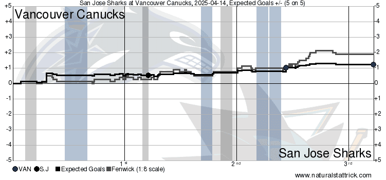 The Vancouver Canucks defeated the San Jose Sharks by a 2-1 overtime scoreline. According to the stats, though, it really shouldn’t have been close. Vancouver handily dominated San Jose through every period and every metric, with a lack of finishing being the biggest reason why they were held to just one goal in regulation. Still, the better team won, and the numbers will show that in spades