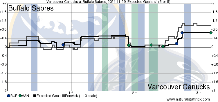 Quite frankly, this game was very much up for grabs through the first two periods. Things slightly favoured Buffalo over the course of the opening two periods, but the ebbs and flows saw the CF% and xGF% balance each other out. That changed after the Canucks managed to pull ahead 3-1 though – the Sabres found the gear that they needed to even up the game, putting together a 76.92 CF% and 88.42 xGF%, all the while holding Vancouver to just 0.09 xGF. It could’ve been disastrous if they kept that pace up, but luckily, overtime happened, and the Canucks managed to secure a winner after yet more brilliance from Lankinen.