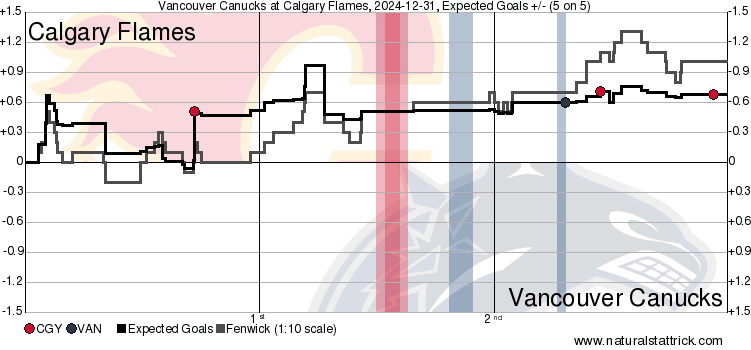 The Vancouver Canucks certainly let the ball drop on New Year’s Eve, losing 3-1 to the Calgary Flames in the Saddledome. It’s a familiar loss for the Canucks again, getting out-chanced, out-possessed, and outplayed in a lot of aspects of the game. The defence struggled, the offence spluttered, and Lankinen had a lot more work than he should’ve had to deal with in the form of the Calgary Flames. To add to the misery, the usual depth forward pieces who’ve been buoying a lot of the numbers the Canucks put up also struggled. In all, it just wasn’t good.