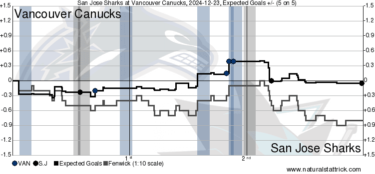 Honestly, the Canucks didn’t have their best game last night. Luckily for them, a strong stretch in the second proved too much for this young Sharks team to overcome. However, for them to consistently play good hockey, the next step is to be able to generate chances consistently and get good performances up and down the lineup. A win at home has been hard to come by, and it’s probably not worth nitpicking that much. But to be putting up these kinds of numbers against a team like the Sharks isn’t the most encouraging of outcomes even despite the victory.