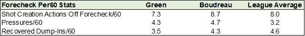 Now that we structurally and visually understand the changes, we want to find out if the numbers are also telling us what our eyes are telling us about the new forecheck. Are the Canucks actually better at preventing clean zone exits and generating chances from their forecheck under Boudreau?