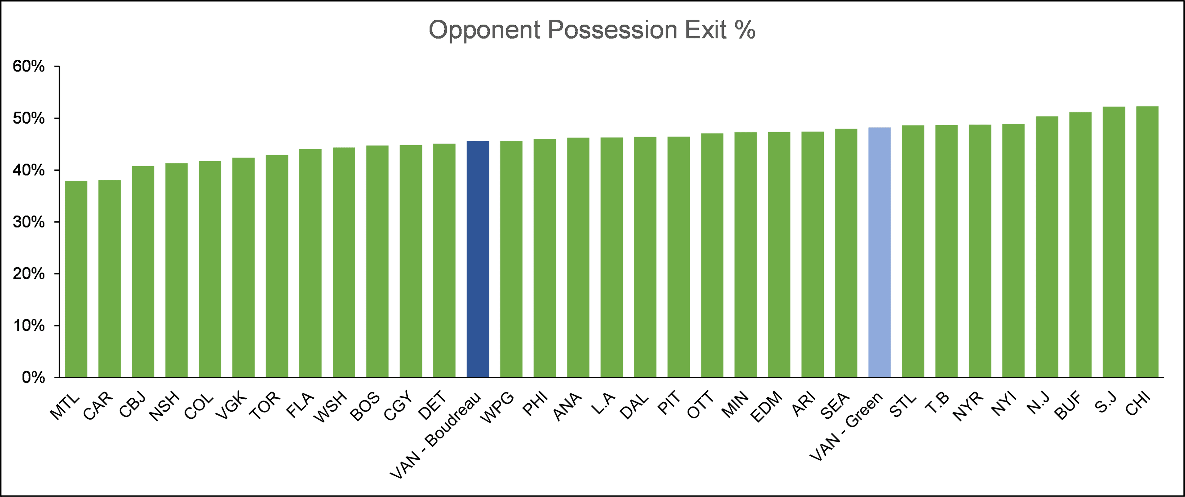 Opponent possession exit % is the most important metric here, and this is how the Canucks stand when benchmarked against all the teams in the league: