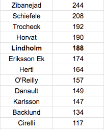 Lindholm ranks fifth in this group, with just four points separating him, Trocheck and cover your eyes Canucks fans, Bo Horvat.