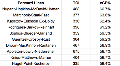 To rank ahead of lines that consist of the league’s most elite talent, such as Nathan MacKinnon, Auston Matthews and Nikita Kucherov, truly shows how effective they’ve been together.