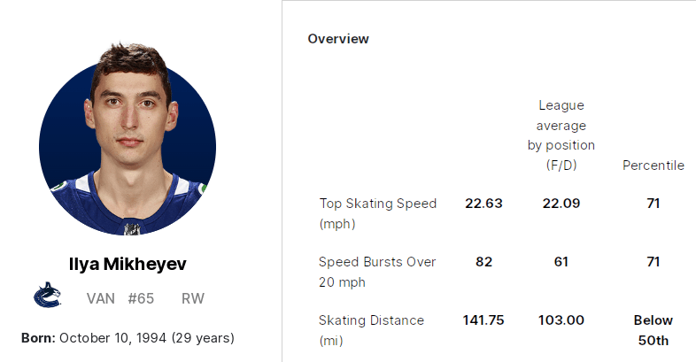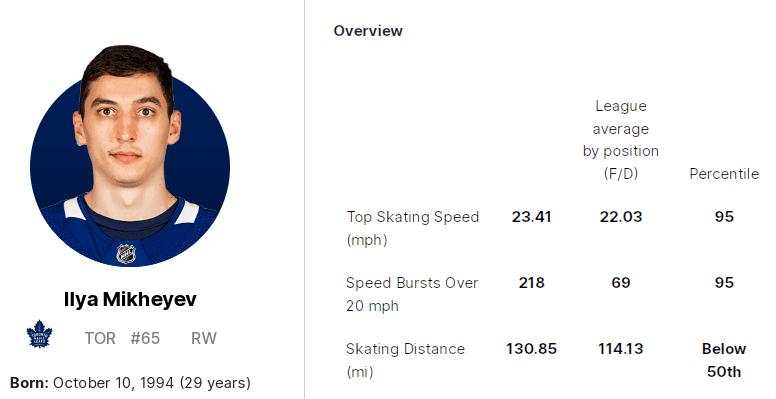 This is exciting to see, as Mikheyev ranked in the 95th percentile in skating speed across the entire league before his ACL injury.