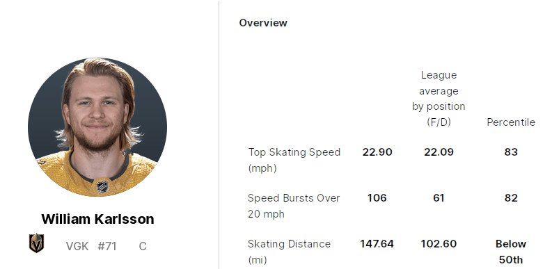 This season, he’s dropped down to the 71st percentile. So now, seeing him stay on pace with Karlsson shows a glimpse of his skating speed returning to form.