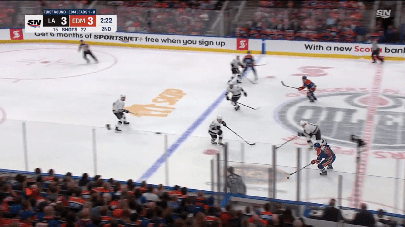 Honestly, the Oilers were playing in the proper position, so it’s hard to blame them for this one. McDavid gave Fiala virtually no room to fire this slap shot, but it somehow found the back of the net for the Kings to take the lead.
