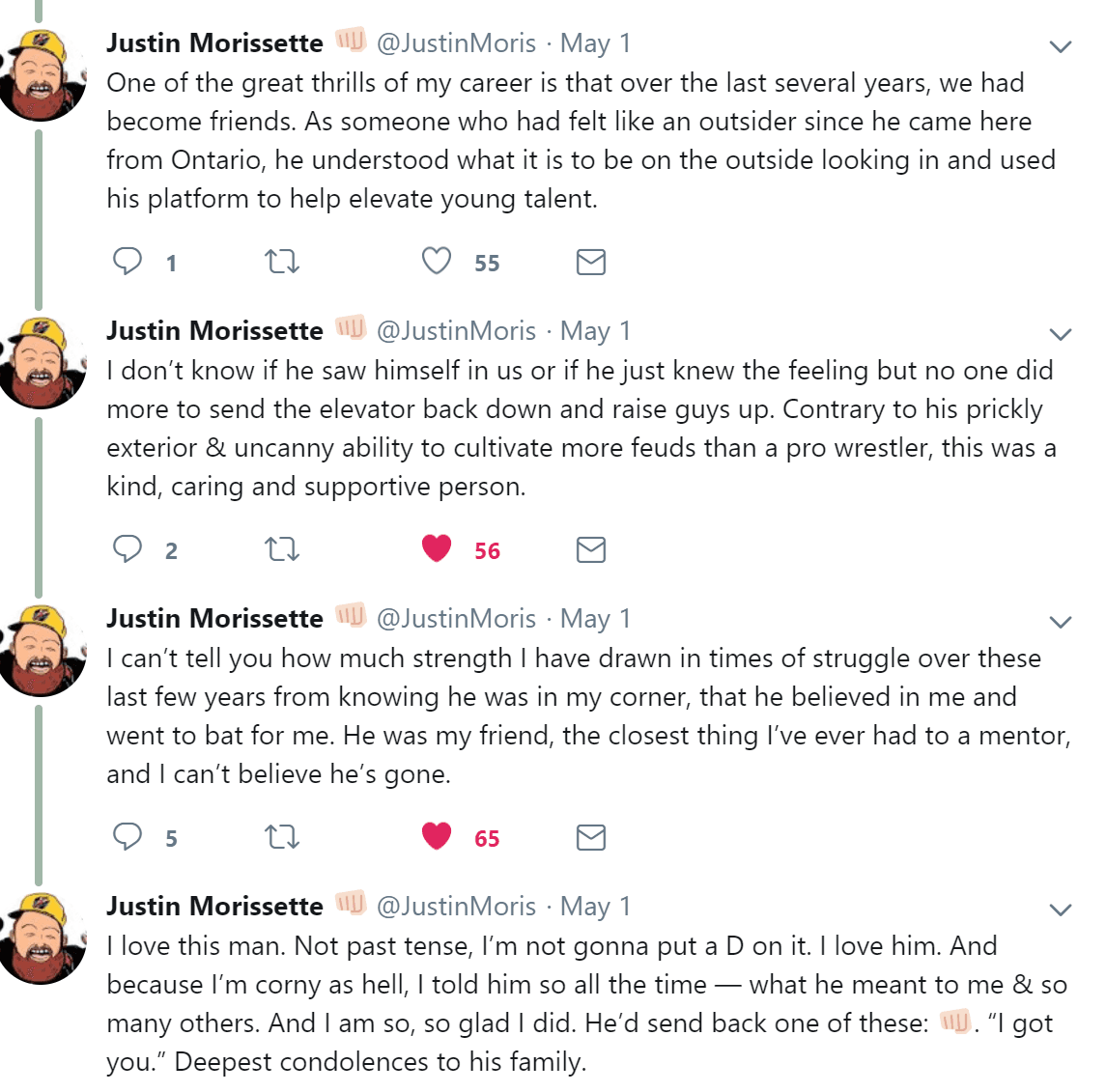 My aversion to this kind of behaviour and fear of being perceived as a cynical social-climber is the biggest reason it’s taken me so long to write about the passing of a man who was, for all intents and purposes, my favourite sports writer, and a personal mentor; even if I didn’t know him the way others in this market did.